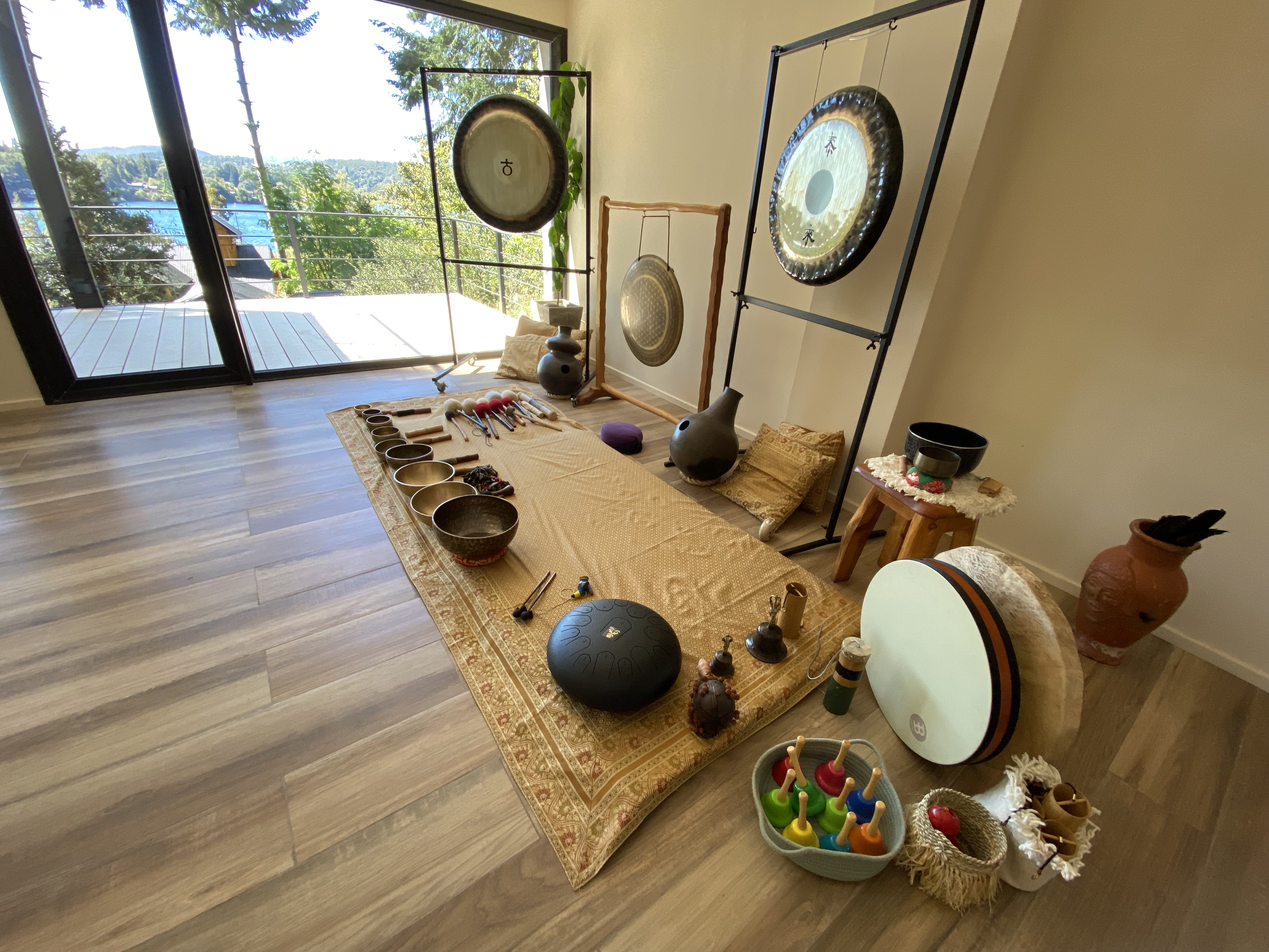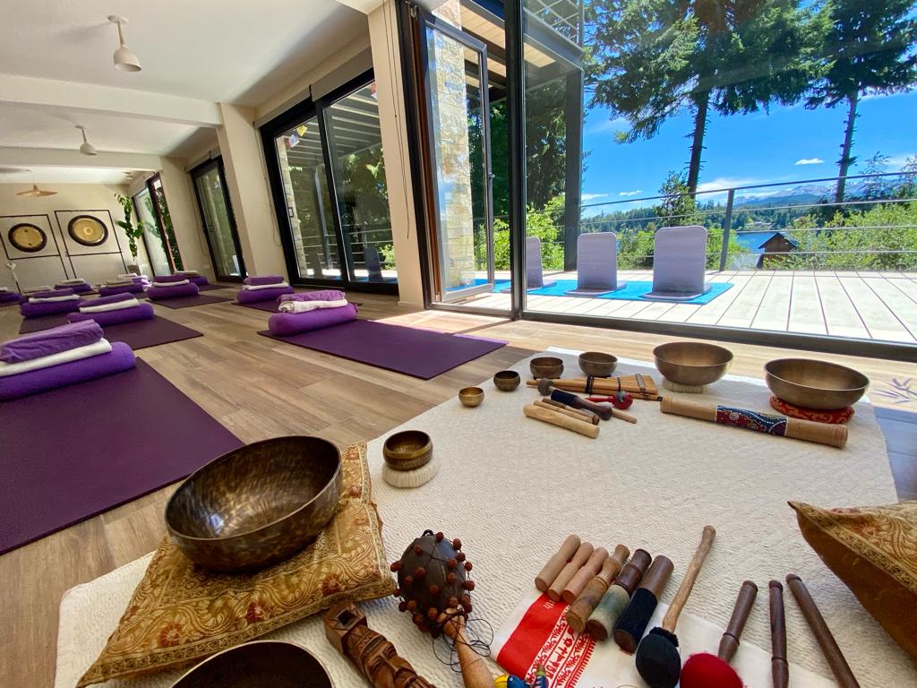 Práctica de yoga con gongs, tambores y música medicina.
