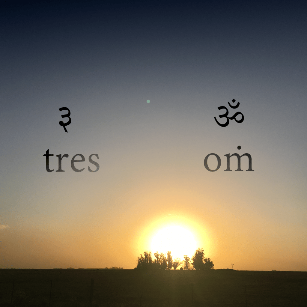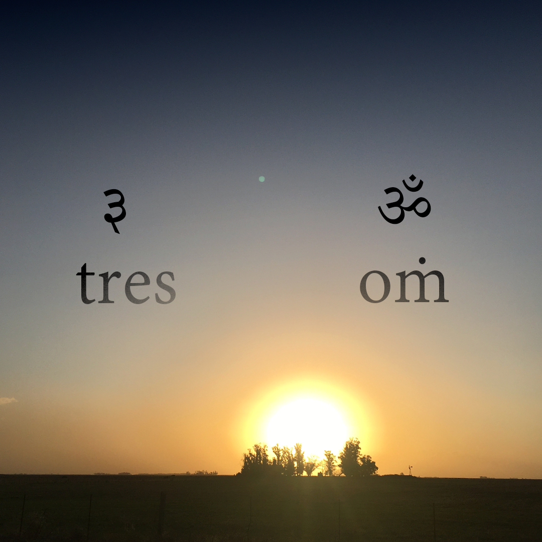El número 3 tiene una gran influencia simbólica, en principio porque representa a–u–ṁ (de la boca más abierta a cerrada), luego por bhuḥ bhuvaḥ y suvaḥ (lo terrenal, lo celestial y lo que está más allá). En meditación con mantras trabajan 3 factores: meditador, objeto de adoración y el proceso de meditación (dhyātā, dhyeyam , dhyānam).