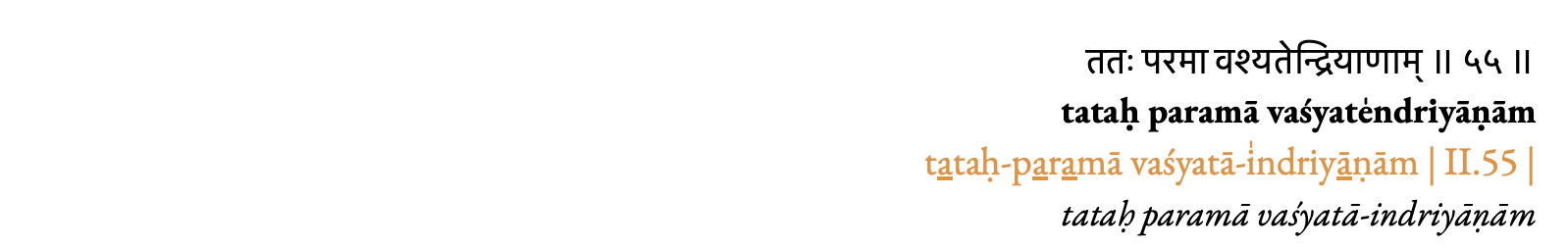 “Y de esta manera (tataḥ), [se logra] el más alto (paramā) dominio de (vaśyatā) los sentidos (indriyāṇām).”